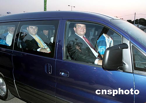 當?shù)貢r間8月3日晚,希臘總理在組委會要員陪同下乘車巡視雅典奧運會賽場。中新社記者:任晨鳴