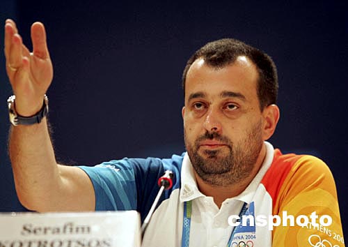 當(dāng)?shù)貢r(shí)間8月3日中午,雅典奧運(yùn)會(huì)新聞發(fā)言人Serafim Kotrotsos舉行新聞發(fā)布會(huì),并就安全保衛(wèi)、門(mén)票銷售以及與北京奧組委的合作等問(wèn)題回答記者提問(wèn)。中新社記者:任晨鳴