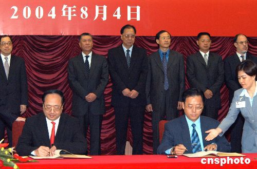 八月四日,中國人民銀行副行長李若谷與澳門金融管理局主席丁連星在澳門特區(qū)政府總部多功能廳分別代表雙方簽署澳門銀行辦理個(gè)人人民幣業(yè)務(wù)合作備忘錄,澳門特別行政區(qū)行政長官何厚鏵等出席簽字儀式。作者:梁永強(qiáng)
