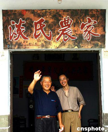 走近“淡氏農(nóng)家”,房門一側(cè)立著一個十平方米大的巨幅彩色廣告牌,這是淡老花二千多塊錢制作的。進入堂屋,正對面便寫著“小平舅父淡以興之家”,左下邊與當(dāng)?shù)卮迕窦依镆粯,掛著一幅小平畫像,上面印著“翻身不忘共產(chǎn)黨,致富更思鄧小平”。兩側(cè)則掛滿了小平與家人在一起的照片、淡老自己與國家領(lǐng)導(dǎo)人的合影等。