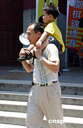 八月八日是臺灣父親節(jié)。圖為一名父親帶著小兒子,前往臺灣師范大學體育館為正在參加圍棋比賽的長子加油。作者:董會峰