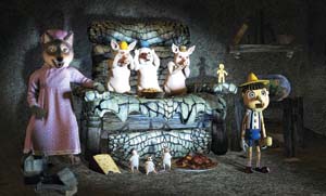 國(guó)王下令逮捕史瑞克一行人一場(chǎng)戲,借用當(dāng)代警匪片和西方電視臺(tái)“真實(shí)現(xiàn)場(chǎng)”類(lèi)節(jié)目的鏡頭語(yǔ)言。史瑞克等人先后被警察圍捕、戴上手銬、投入警車(chē)。一個(gè)細(xì)節(jié)是,貓咪殺手被栽贓,警察從它身上搜出一包海洛因。全身是毛、近乎裸體的貓身上怎么會(huì)夾帶毒品?(王星)