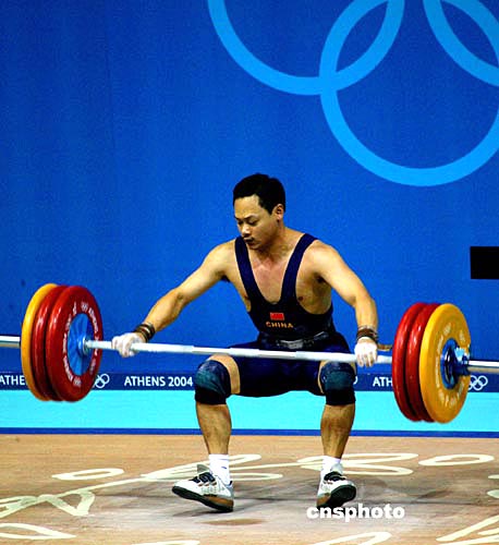 首先進行的是該級別的抓舉比賽,占旭剛第一把最初要的是一百五十五公斤,不過比賽開始后他卻改成了一百五十七點五公斤。雖然他傾盡全力,但是連續(xù)三次抓舉都沒有成功,未能獲得抓舉成績。