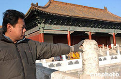 | 北京太廟戟門前金水橋防風(fēng)化保護(hù)工程日前完工。經(jīng)過幾百年的風(fēng)吹日曬和酸雨的侵蝕,太廟戟門前金水橋的部分欄板和望柱出現(xiàn)不同程度的裂紋,風(fēng)化嚴(yán)重地方甚至出現(xiàn)整體疏松現(xiàn)象。為此,文物部門采用防風(fēng)化、耐老化等性能最好的化學(xué)材料,對(duì)此石質(zhì)文物進(jìn)行了化學(xué)保護(hù),并更換了部分雕龍漢白玉望柱(圖)。太廟位于紫禁城的左前方,建于1420年,是皇宮外朝重要組成部分,和中國目前僅存且保存最完整、規(guī)模最大的皇家祭祖建筑群。此次工程也包括太廟犧牲所的修繕,總用資100萬元人民幣。中新社記者:鄒憲