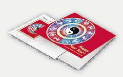 此外,還有特別的首日封設(shè)計(jì),一款設(shè)計(jì)為純白信封,信封左側(cè)有十二生肖到齊排成一圈,喜氣的大紅色為底,12張生肖郵票圍成的圓圈中央,且有太極陰與陽的符號。另一款以中國人偏好的竹子打底,封面上左側(cè)是某一生肖的造型,十分可愛,上書Happy New Year!集郵愛好者也可買到大紅色的折疊夾,用以保護(hù)首日封或者新郵票。