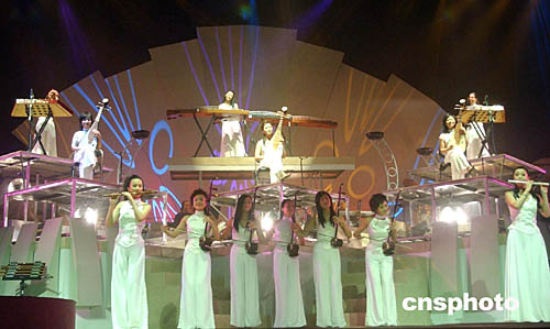 一月八日晚,著名樂隊(duì)組合“女子十二樂坊”在北京展覽館劇場(chǎng)激情上演“OLAY.CHINA十五周年女子十二樂坊專場(chǎng)音樂會(huì)”,令現(xiàn)場(chǎng)觀眾感受到民樂藝術(shù)的無窮魅力。作者:韓藝冰