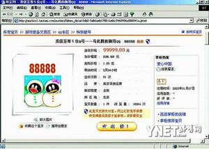 該網(wǎng)站一則信息介紹說,該號碼為頂級至尊5位Q號,為馬化騰專用,號碼為:88888。該號碼起始價格為1元,加價幅度為200元,起拍時間是2005年1月7日22點。