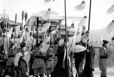 胡:這其實(shí)是《漢》劇真正的遺憾所在,有很多原因,有些是審片造成的技術(shù)性刪節(jié),使得情節(jié)不連貫。我們?cè)瓉碛?0多集,刪到了58集。還有一些是拍攝時(shí)因?yàn)槭芊堑溆绊,一些演員不能到位。在《漢》劇還有一些禮儀服色著裝也不準(zhǔn)確,人物形象不統(tǒng)一,這都是受當(dāng)時(shí)拍攝條件的影響。