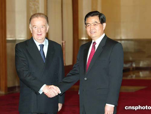胡錦濤舉行儀式歡迎葡萄牙共和國總統(tǒng)若熱·桑帕約訪華。作者:滿會(huì)喬