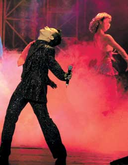 《永恒的張國(guó)榮》是從無(wú)盡的黑暗中開(kāi)始的,然后有張國(guó)榮影像的巨大白色紗幔緩緩升起,張國(guó)榮從出道到他離世前的照片一幅幅出現(xiàn)在舞臺(tái)背景中。場(chǎng)燈亮了起來(lái),由陳志朋扮演的張國(guó)榮唱著《今生今世》出現(xiàn)在舞臺(tái)上,他的造型完全模仿“哥哥”2000年熱情演唱會(huì),一身白色羽毛,天使打扮。張國(guó)榮演出的真實(shí)影像在大屏幕上,《似水流年》、《紅》、《深情相擁》、《共同度過(guò)》、《由零開(kāi)始》、《無(wú)心睡眠》、《愛(ài)慕》、《風(fēng)繼續(xù)吹》等18首歌交替被陳志朋展現(xiàn)。有的觀眾說(shuō),“我們不在乎陳志朋演得怎么樣,最重要的是回憶‘哥哥’的人生和舞臺(tái)歲月,在我們心中根本沒(méi)有人能夠取代張國(guó)榮、扮演張國(guó)榮!”伴隨著這些歌曲,《永恒的張國(guó)榮》也講述了一個(gè)浪漫的愛(ài)情故事:女大學(xué)生去看張國(guó)榮的2000年熱情演唱會(huì),演唱會(huì)后立刻成了張國(guó)榮的忠實(shí)歌迷,而且她更是在觀看演唱會(huì)的時(shí)候,認(rèn)識(shí)了同為“哥哥”歌迷的導(dǎo)演。他們迅速地走到了一起,成為戀人。但沒(méi)想到的是,男孩兒在一次高原采風(fēng)途中意外死去了……男女主演表演得都比較生澀,有些作秀的感覺(jué),好在只是陪襯。(記者 郝曉楠)