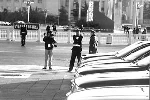 張景龍等下午3時多便到了人民大會堂北門。他說,一般情況下,特勤民警要提前1小時到,特殊情況下,甚至可能提前24小時進行現(xiàn)場控制。