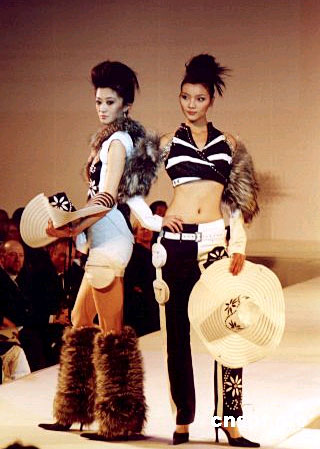 裘皮革皮制品交易會(huì)上模特展示裘皮晚裝