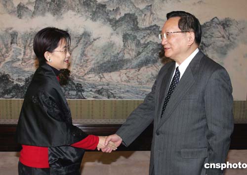 圖:唐家璇會見臺灣海峽兩岸聯(lián)合經貿協(xié)會參訪團