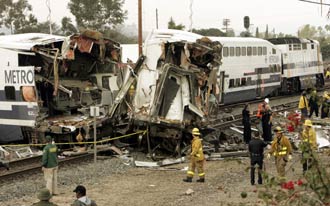 警方和救援人員稱,初步調查表明這起重大交通事故是由一名打算自殺的年輕人將汽車停在鐵路軌道上造成的。事發(fā)時,一列往南行進的輕軌列車在洛杉磯地區(qū)的格倫代爾鎮(zhèn)撞上這名年輕人停放在軌道上的吉普車后出軌,又與另一列往北行進的輕軌列車相撞,車廂翻倒。
