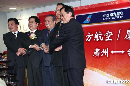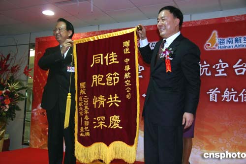 圖:兩岸航空業(yè)者臺北祝賀首航成功