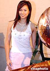 2004年度香港小姐季軍符思思小姐,在日前的香港女童軍總會攪珠頒獎儀式上,雖然笑得開心隨意,但也不失文靜大雅。作者:宋吉河