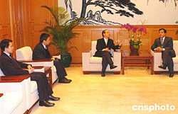 外交部駐港特派員楊文昌2月4日在香港外交部駐港公署會見香港民建聯(lián)立法會議員劉江華﹐就為去年印度洋海嘯災(zāi)難中受困港人提供協(xié)助及涉港領(lǐng)事保護等問題進行了交談。中新社記者:趙振清