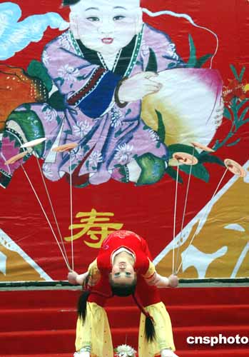 歡度新春佳節(jié)之際,北京眾多廟會各種精彩的文化活動吸引市民游客觀賞,二月十日在東岳廟春節(jié)文化廟會上,雜技團(tuán)小演員表演的“彩蝶紛飛”吸引游人觀看。作者:錢興強(qiáng)
