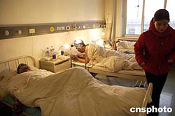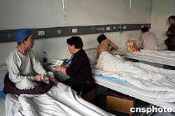 遼寧阜新礦業(yè)集團海州立井“二·一四”特大事故發(fā)生后,搜救人員又搜尋到六具失蹤礦工的遺體,截至十六日早上,遇難礦工人數上升到二百零九人,受傷人數二十九人,仍有六人失蹤。目前共有二百零四具遇難礦工遺體升井,井下五具已確定具體位置。圖為在阜新礦業(yè)集團總醫(yī)院接受治療的礦難傷者。作者:盛佳鵬