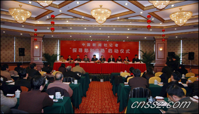為紀(jì)念鄭和下西洋六百周年,中新社派出文字記者韓勝寶、攝影記者蔣振江,帶了一百多個探尋題目,采訪海內(nèi)外鄭和研究的專家學(xué)者,探訪鄭和的遺跡,從政治、軍事、航海、經(jīng)貿(mào)、文化、科技、外交、宗教等領(lǐng)域,通過文字和圖片全方位向世人揭示許多鮮為人知的鄭和之謎,宏揚(yáng)鄭和偉大的民族精神。探尋活動至七月十一日鄭和七下西洋紀(jì)念日前返回,歷時四個月。主要采訪地在東南亞一帶還有國內(nèi)的云南鄭和出生地、福建泉州鄭和停泊港和南京鄭和造船地。參加活動儀式的還有中新社副總編田惠明、總編輯助理張明新和江蘇分社社長陳光明。來自上海、南京、蘇州等地的新聞界人士也參加了儀式。