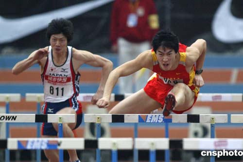 中新社天津三月一日電(記者 沈晨)奧運(yùn)會冠軍劉翔終于在天津順利完成了二00五年第一跨!在今日下午進(jìn)行的亞洲田徑公開賽暨中日田徑對抗賽男子六十米欄比賽中,劉翔以七秒五零的成績力壓亞洲各路諸侯奪冠。