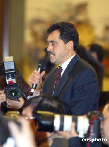 圖:半島電視臺(tái)記者向中國(guó)外交部長(zhǎng)李肇星提問