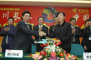 中新網(wǎng)3月7日電 3月4日,“中國電信-四川長虹4008業(yè)務(wù)合作簽約儀式”在四川省綿陽市隆重舉行。長虹電器股份有限公司副總經(jīng)理鄔江與中國電信集團(tuán)公司大客戶事業(yè)部梁志平總監(jiān)代表雙方在協(xié)議書上簽字。