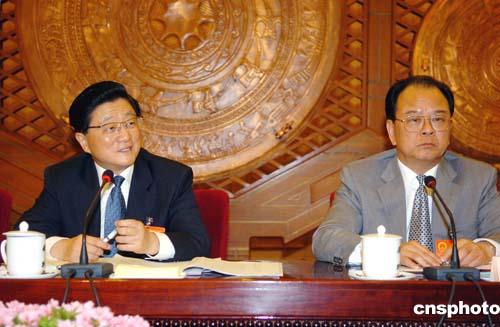 圖:黃菊聽取中國科學院院長路甬祥發(fā)言