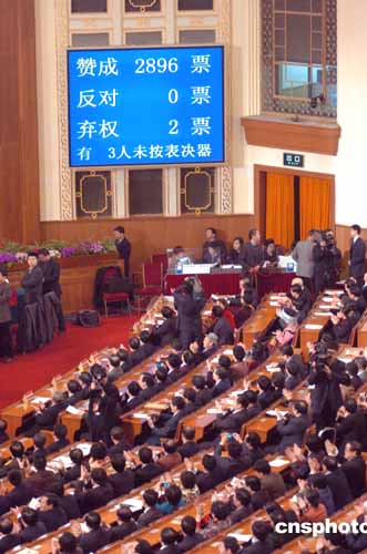 十屆全國(guó)人大三次會(huì)議表決通過(guò)反分裂國(guó)家法草案