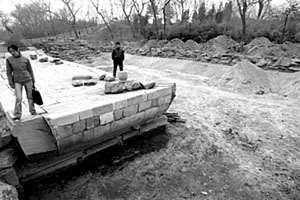 中新網(wǎng)3月17日電 京華時報報道,昨天,有北京市民在圓明園石舫遺址發(fā)現(xiàn)十余件石舫殘件,懷疑是被八國聯(lián)軍破壞的石舫原件。