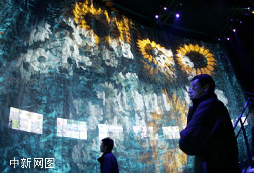 愛知世博會三月十八日舉行首次內覽會,各國展館紛紛亮相。圖為參觀者在加拿大館欣賞作品。
