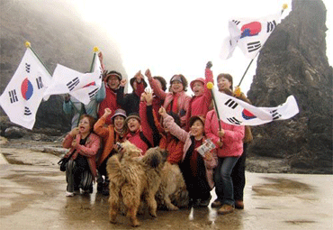據(jù)報(bào)道,該游輪定員為215人,這次有希望游覽“獨(dú)島”的游客和媒體記者等60多人搭乘了這艘船。韓國游客一踏上“獨(dú)島”就口喊“我們的領(lǐng)土獨(dú)島”。