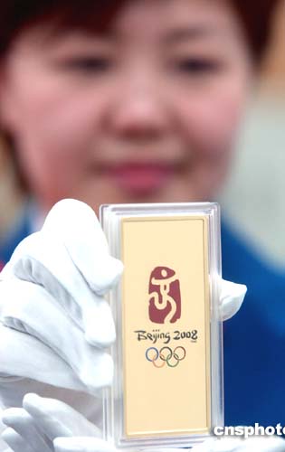 | 3月29日,“北京奧運(yùn)金”彩色系列第一組開(kāi)始在北京菜百公司發(fā)售。“北京奧運(yùn)金”材質(zhì)為99.99%的黃金,分別為50克、100克和1000克三種規(guī)格,全國(guó)總發(fā)行量為1.75噸。據(jù)介紹,北京奧運(yùn)金彩色系列擬發(fā)5組相對(duì)獨(dú)立的產(chǎn)品,第一組紀(jì)念?yuàn)W運(yùn)會(huì)徽,其他組系的主要內(nèi)容為吉祥物,主場(chǎng)館,奧運(yùn)火炬,奧運(yùn)會(huì)開(kāi)幕等。作者:韓藝冰