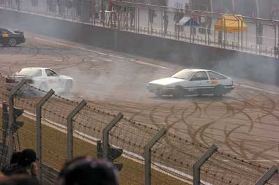 幾萬名觀眾觀看了《頭文字D》電影中的飄移比賽,在電影中使用的四輛賽車AE86、EVO、FC、GTR專門從香港運送過來,四輛賽車在跑道中呼嘯著做各種轉(zhuǎn)彎和飄移的動作,隨著一道道青煙的升起,全場立即沸騰起來。