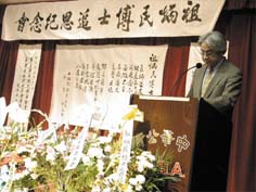 前紐約民權(quán)委員會副主席王碚介紹了祖炳民的生平:祖籍山東蓬萊,1924年生于吉林省。46年畢業(yè)于日本東京法學(xué)院。49年在美國華府喬治城大學(xué)獲外交政治碩士學(xué)位。54年獲紐約福旦大學(xué)政治學(xué)博士學(xué)位,同時擔任于斌主教特別助理。60年任新州西東大學(xué)遠東學(xué)院院長,同時協(xié)助創(chuàng)設(shè)全美中文教師學(xué)會,推動美國的中文教育,遍及大、中、小學(xué)。