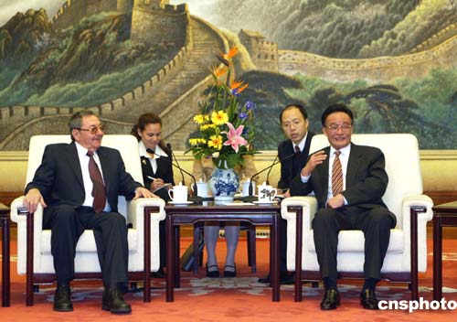 四月十九日,全國人大常委會委員長吳邦國在北京會見了古巴共產(chǎn)黨中央第二書記、國務委員會第一副主席兼部長會議第一副主席勞爾·卡斯特羅。作者:廖文靜