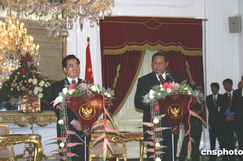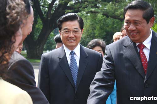 中新網(wǎng)雅加達四月二十五日電(記者李靜)中國國家主席胡錦濤二十五日在雅加達與印尼總統(tǒng)蘇希洛舉行會談。雙方共同簽署《聯(lián)合宣言》,宣布建立中國與印尼戰(zhàn)略伙伴關系。