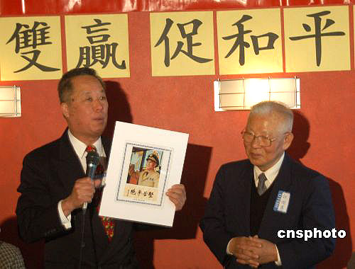 當(dāng)?shù)貢r(shí)間五月七日,華盛頓“榮光會”會長李昌緒(左)向臺灣“新同盟會”會長許歷農(nóng)(右)贈送照片。許歷農(nóng)曾經(jīng)擔(dān)任國民黨軍隊(duì)高級將領(lǐng),幾年前因不滿李登輝而退出國民黨的許歷農(nóng)最近又回到國民黨。作者:余東暉
