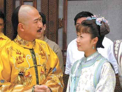 《飛龍倚天游》和《龍非龍鳳非鳳》兩部古裝戲昨天在橫店同時(shí)對(duì)媒體開放。雖然是兩個(gè)各自獨(dú)立的劇組,但兩部戲方方面面千絲萬(wàn)縷的聯(lián)系起初仍搞得記者們一頭霧水。首先,兩部戲都是亦莊亦諧風(fēng)格的情節(jié)劇,故事又都發(fā)生在清朝,而且除了張國(guó)立父子同上陣外,鄧婕還在《龍非龍鳳非鳳》中扮演慈禧并擔(dān)任總制片人。更復(fù)雜的是張國(guó)立及張默、王剛、臺(tái)灣演員鄭家榆等又在兩部戲中分別出演不同角色,搞得兩部戲之間的聯(lián)系更為復(fù)雜。