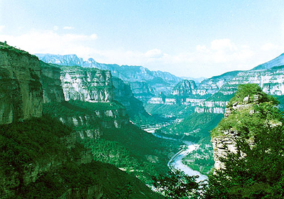 太行大峽谷地處河南省西北部,南太行山東麓的林州市西側(cè),南北長(zhǎng)100華里,東西寬2.5華里,海拔800——1739米,相對(duì)高差達(dá)1000米以上,境內(nèi)斷崖高起,群峰崢嶸,陽(yáng)剛勁露,臺(tái)壁交錯(cuò),蒼溪水湍,流瀑四掛,峰、巒、臺(tái)、壁、峽、瀑、嶂、泉姿態(tài)萬(wàn)千,是北方山水風(fēng)光的典型代表。