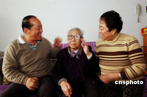 | 一九九一年回到日本居住的日本遺孤杜冬梅,因不忍中國的養(yǎng)母在長春無人照顧,現(xiàn)在又回到了中國養(yǎng)母身邊。她說,我當(dāng)時(shí)遺留在中國時(shí)曾患有淋巴結(jié)核,下巴淌著膿,是養(yǎng)父母收養(yǎng)我并給我一次次治病,后來又供我上了大學(xué),沒有養(yǎng)父母對我的愛,也許我早就死了。據(jù)資料記載,在中國東北日本侵華戰(zhàn)爭后留下了大約五千名日本遺孤。圖為杜冬梅和丈夫與養(yǎng)母于世芳聊天逗笑。作者:王麗南