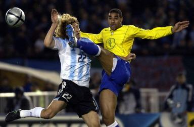 此后,場(chǎng)上火藥味漸濃,兩隊(duì)隊(duì)員頻頻出現(xiàn)肢體沖突,裁判不得不先后出示多張黃牌來讓雙方冷靜。巴西隊(duì)的進(jìn)攻依然沒有起色,阿根廷隊(duì)的反擊確實(shí)非常具有威脅性。第39分鐘,阿根廷隊(duì)兩名前鋒克雷斯波和薩維奧拉配合,后者將球傳中,克雷斯波在羅克-儒尼奧爾盯防下頭球一蹭,皮球應(yīng)聲入網(wǎng)。比分被擴(kuò)大為3比0。