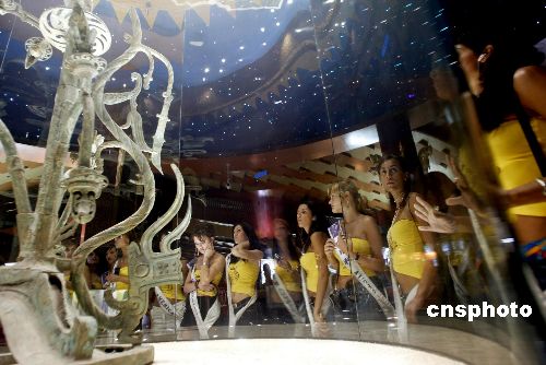 | 六月十五日,二○○五國際旅游小姐冠軍總決賽的來自七十五個國家和地區(qū)的旅游形象大使,來到四川省廣漢市,參加二○○五中國四川三星堆國際旅游文化節(jié)暨二○○五國際旅游小姐最具魅力小姐冠軍大賽決賽,各國旅游小姐在參觀三星堆博物館時,被古蜀文明深深吸引。圖為各國佳麗在三星堆博物館館藏文物“神樹”前流連忘返。作者:盛佳鵬