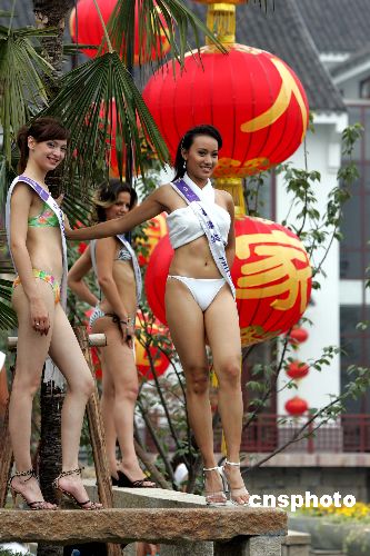 組圖:國際旅游小姐大賽佳麗在水鄉(xiāng)周莊拍攝泳裝照