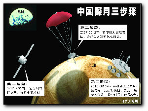 2004年2月,國防科學(xué)工業(yè)委員會(huì)領(lǐng)導(dǎo)對(duì)外宣稱:中國月球探測計(jì)劃已經(jīng)進(jìn)入實(shí)施階段,將分“繞”、“落”、“回”三步。