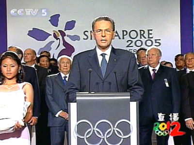 主辦城市選舉的懸念留到了最后一輪,由倫敦“決斗”同樣強(qiáng)大的巴黎。在這輪的投票選舉中,雙方?jīng)]有讓國(guó)際奧委會(huì)主席羅格難堪的戰(zhàn)成平手,而是高下立分。在經(jīng)過一段讓人幾乎窒息的等待之后,一位華裔新加坡女孩把放有結(jié)果的信交給了羅格。羅格在感謝了東道主新加坡民眾、此前提出申請(qǐng)的國(guó)家和五個(gè)候選國(guó)家后,向世人大聲宣布:國(guó)際奧委會(huì)決定,把第30屆奧運(yùn)會(huì)的主辦權(quán)交給倫敦!
