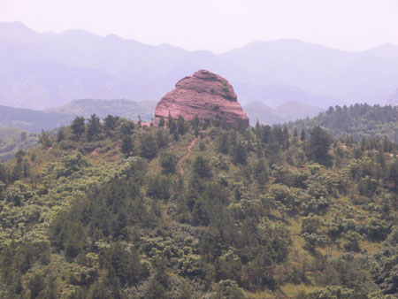 中新網(wǎng)7月10日電 環(huán)抱承德市區(qū)的磬錘峰國(guó)家森林公園景觀奇特,山內(nèi)有一形如棒槌的石柱,故被康熙賜名“磬錘峰”。