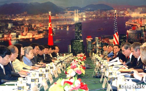 中國(guó)國(guó)務(wù)院副總理吳儀與美國(guó)商務(wù)部長(zhǎng)古鐵雷斯進(jìn)行會(huì)談。作者:廖文靜