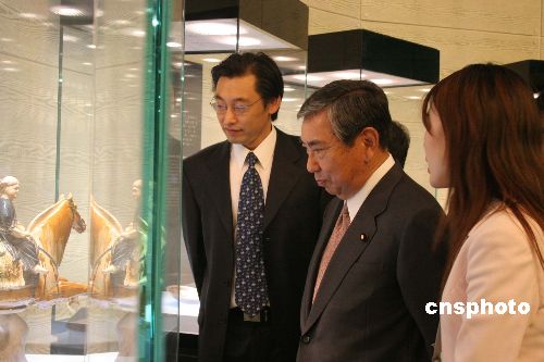 河野洋平依次參觀了館內(nèi)陳列的豚尊、唐三彩“騰空馬”等八件國(guó)寶級(jí)文物,對(duì)三千六百多年前中國(guó)就能制作出如此精美的青銅酒器大為驚嘆,并稱奔馬造型的唐三彩十分罕見(jiàn)。在紫檀齋,河野洋平被其中的仿明清宮廷家具深深吸引,對(duì)云朵和海浪交錯(cuò)鏤空的九龍戲珠大如意大為贊賞。當(dāng)聽(tīng)說(shuō)雕工精細(xì)的大畫(huà)筒是二十個(gè)雕工藝人足足用了三年時(shí)間才雕刻而成時(shí),他更是贊不絕口。