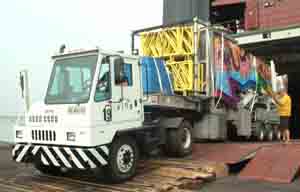 環(huán)球嘉年華首批設(shè)備運輸車隊由56輛車組成,運送20呎和40呎兩種集裝箱共278個,另有71個異型貨柜。7月10日17時,這些設(shè)備在天津港裝車出發(fā),走京津塘高速公路到達北京,于當(dāng)天23時進入2005北京環(huán)球嘉年華6萬平米的活動場地。